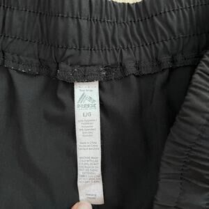 Description: Black athletic short with zipper pockets and an elastic waist. Cuffed legs.