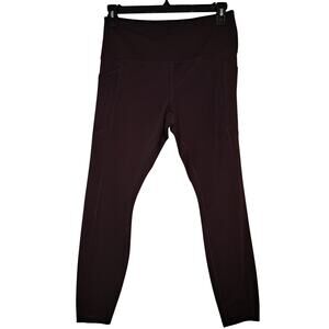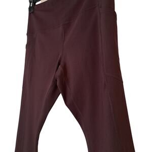 These RBX calf-length leggings combine comfort and functionality in a beautiful burgundy (wine-toned) shade that may appear darker—closer to brown or black—in photos. Made with a supportive and flexible blend of 75% polyester and 25% spandex, they offer a snug yet breathable fit. Each leg features a built-in side pocket, perfect for carrying your phone, keys, or other small essentials.