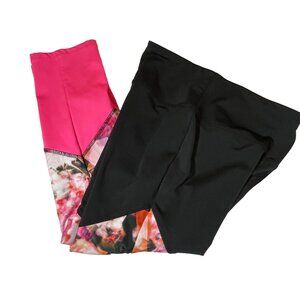 RBX Women's Floral & Geometric Print Leggings Small Black/Pink 88% Polyester 12%