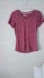 Used RBX Performance athletic activewear shirt. Short sleeves, V-neck, with burgundy and pink prints. Measurements are approximate and may have slight variations. All sales final. May have minor hidden flaws.