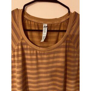 RBX Womens XL Camel Striped Short Sleeve Activewear Shirt Breathable Lightweight