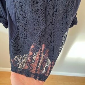 RBX indigo blue lace overlay 3/4 Length sleeve top new with tags size small