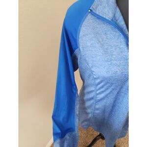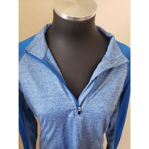 Quick drying exterior fabric active pullover. Thumb holes. Flattering seaming details. Poly/Spandex blend. 1/4 zip pullover