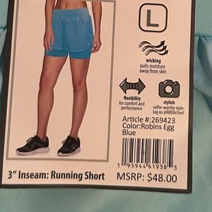RBX athletic running shorts. Details on the tag in photos. New with tags. Size women’s Large
