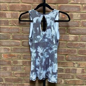 RBX Black-White Workout Tank Top Size Small NWOT Scoop neck Pleat in front Key hole in back Racer back 92% polyester 8% spandex