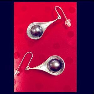 RCI Italy Signed Dark Blue Pearl Dangle Earrings Sterling Silver 925