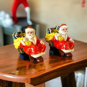 RCPC Vintage Porcelain Santa Clause Tapered Candle Holders. 1991.