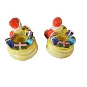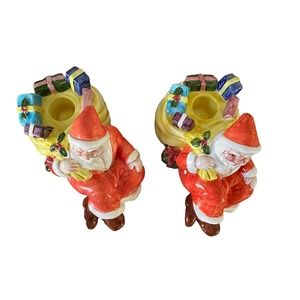 RCPC Porcelain Vintage Santa Clause Tapered Candle Holders. 1991