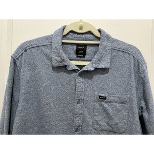 RCVA Woven Button Down Large Mens Slim Fit Long Sleeve Blue Melange Yarn