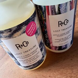 These are in brand new/unused condition. R+Co Lost Treasure Apple Cider Vinegar Cleansing Rinse are perfect for cleansing the hair without removing oils or color and softens and strengthens hair with use. The Lost Treasure Apple Cider Vinegar Condition is a perfect match! It's lightweight formula detangles, prevents frizz and eases styling. They are both know for being Vegan, paraben free and gluten free and both promote incredible, healthy shine. They were sold as individual bottles and don't have boxes. Each retail for $34 making this a retail set value of $68.