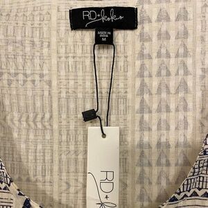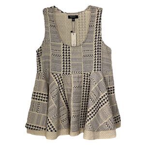 RD + Koko Peplum Cream & Navy Aztec Print Faux Linen Layer Tank NWT Size Medium