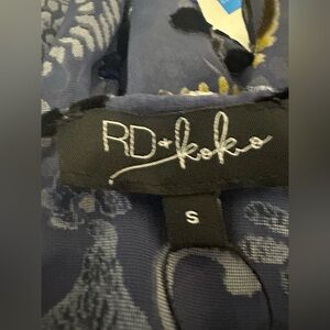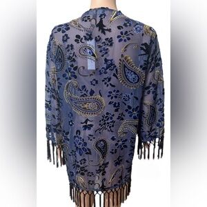 RD Koko Velvet Burnout Kimono S Sheer Boho Paisley Fringe Duster Blue Gold Floral