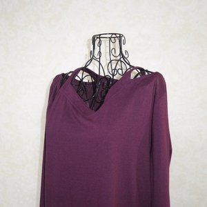 This RD Style blouse features a trendy cold shoulder design and long sleeves, perfect for any fashionable woman. The heathered red color and cotton blend material make it comfortable and stylish for any occasion. The shirt is a size small and fits regular size types. The blouse is branded with RD Style and has a stylish pattern that adds an extra touch of elegance to the shirt. This piece is perfect for any woman looking to enhance her wardrobe with a fashionable and versatile top.