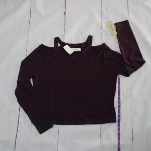 RD STYLE Red Cold Shoulder Long Sleeve Top
