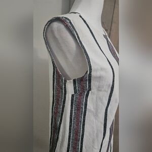 RD STYLE Textured Cotton Striped Sheath Mini Dress In White/navy/red. Size Small