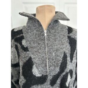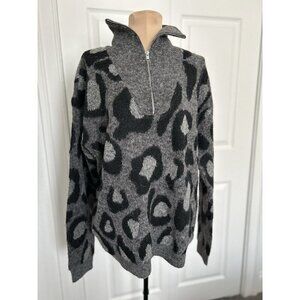 RD Style Conscious Women's 1/4 Zip Gray Black Animal Print Wool Blend Sweater M