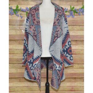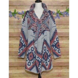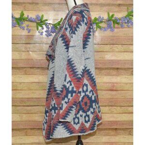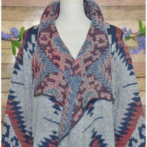 RD Style Ladies Gray Open Front Cardigan Sweater Size L Southwest Aztec Warm