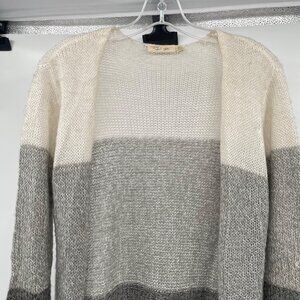 RD Style Open Knit Duster Cardigan Open Front Gray/Multi Colorblock Size Medium