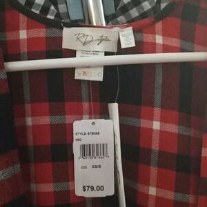 Red, Black and White Plaid Open Fringed Poncho. Size XS/S Never been worn. 25 1/2 inches long in back with 6 additional inches of fringe.