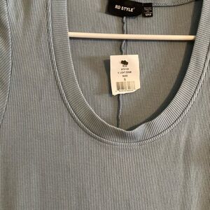 Stylish ribbed tank top in a soft blue shade. Ideal for layering or wearing alone. NWT