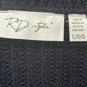 RD Style Sweater Womens Large V-Neck Navy Blue Classic Knit Pullover Long Sleeve