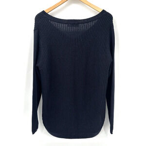 RD Style Sweater Women's Size Large V-Neck Dark Navy Blue Classic Knit Pullover Long Sleeve Coastal Nautical