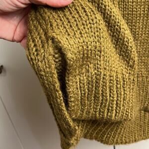 RD Style V Neck Sweater. Soft Light Brown. Long Sleeve. Pullover. Acrylic. Size Small. Ribbed neck, hem and cuffs. Vented at the bottom of the side seams. Oversized. Armpit to armpit is 21 inches. Shoulder to hem is about 24 inches in the front. Back is about an inch longer. Soft! New without tags.