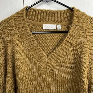 RD Style V Neck Sweater Light Brown Long Sleeve Pullover Acrylic Small NWOT