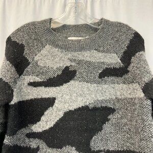 RD Style Womens Black Gray Camo Long Sleeve Crew Neck Pullover Sweater Size S