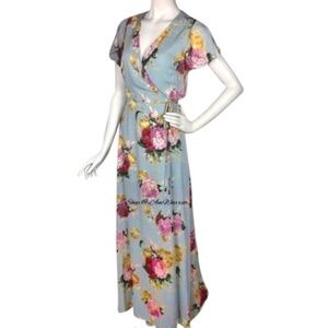 RDB Floral NWT baby blue wrap tie maxi dress *shop@iamwarrior