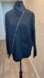 Elegant cowl neck sweater in black. Features diagonal zipper and front pocket. Perfect for layering.