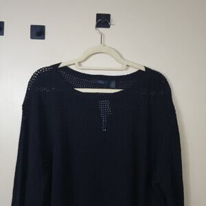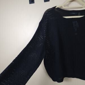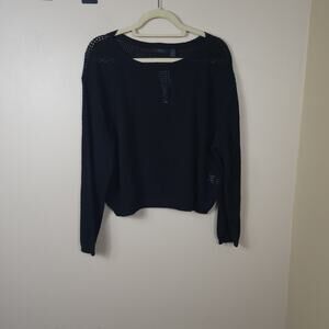 New with tags. Size large. Color black. Open knit sweater. Cropped length. Boxy fit.