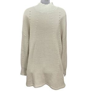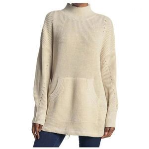 RDI Sweater Tunic Mock Turtleneck Funnel Tan Sand Drop Shoulder Kangaroo Pocket Drawstring Hem Women Small Winter Tunic Oversized Casual