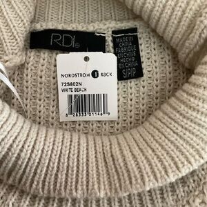 Sweater Tunic Mock Turtleneck Funnel Neck by RDI Tan Sand with Kangaroo Pocket Drop Shoulder Drawstring Hem Women Size Small