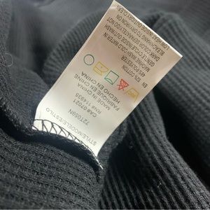 RDI Waffle Knit Kangaroo Pocket Sweater Thermal Hi Low Hem Black Small NWT 5496