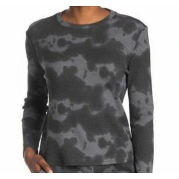 RDI Women Waffle Knit Crew Neck Pullover Top Size Medium Gray Camo/Tie Dye NWT