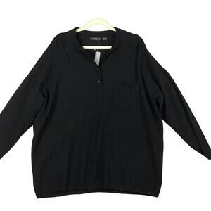 RDI Womens Size Medium Oversized Polo Collared Pullover Sweater Black Pocket