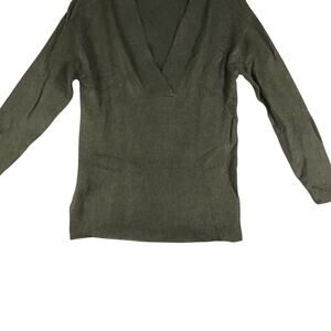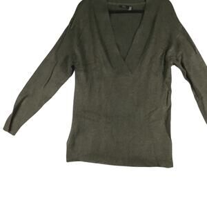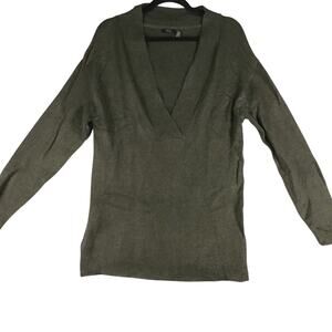 RDI Womens Small Tunic Sweater Deep V Neck Oversized Dark Green Solid NWT