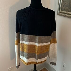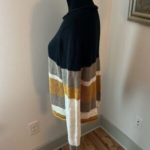 RDI loose knit mock neck long sleeve stripe sweater Sz Large