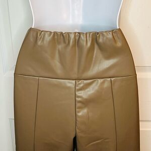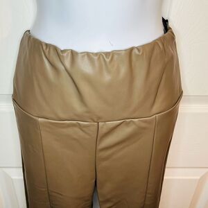 RDI Faux Leather Slit Front Flare Pants Taupe Gray Brown Size Large. Flare silhouette. Banded Elastic Waist has 2” of stretch. Front slits at ankle. On trend. Buttery soft faux leather. NWT
