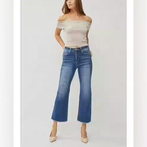RDP5572 Risen High Rise Crop Ankle Flare Raw Hem Jeans. In worn once condition. No visible flaws. They do have some