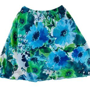 REA Classics Floral A-Line Skirt size PL Blue Green Elastic Waist Y2K