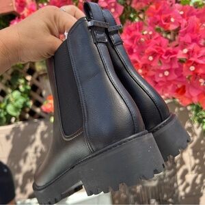 REACTION KENNETH COLE Womens Black Animal Print Padded Pull Tab Goring Lug Sole Salt Lug Chelsea Round Toe Wedge Chelsea 7 These woman Marc Fisher booties are new in box súper confortable size 7