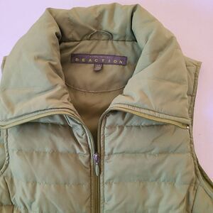 REACTION by Kenneth Cole Womens Green Puffer Zip Front Vest Jacket Large