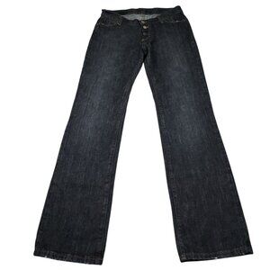 Women's Alexander mcqueen low to mid rise straight leg button fly jeans in faded black 100% cotton nonstretch denim. They have marker on the inside as shown in photos, and some missing stitches along the waistband as shown in photos (may have been altered?). There is also some staining on the inside tags as shown. The buttons are flexible/wobbly and have scratches as shown in photos. The jeans are tagged as a size 46, but please note, they run very small, particularly in the hip/thigh and DO NOT stretch. I wear a US size 8 and I couldn't even put them on. Measurements shown in photos with jeans laid flat: