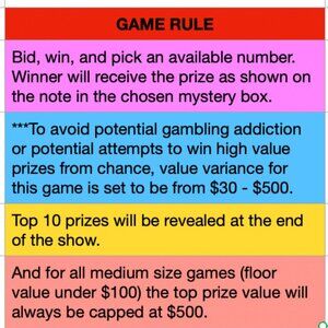 Bid, win, and pick 1 number from #1-#100. Winner will receive the prize as shown on the note in the chosen mystery box. For more details please refer to the tray listings.