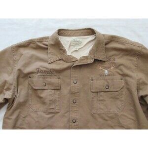 READ CABELA'S M Brown Canvas Lined Shirt Jacket 2XL Tall Button Long Sleeve