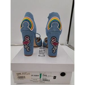 READ Cape Robbin Boho Western Denim Patches block high heel pointy toe Shoes. Heels have some excessive glue marks on them, see all pictures as part of description