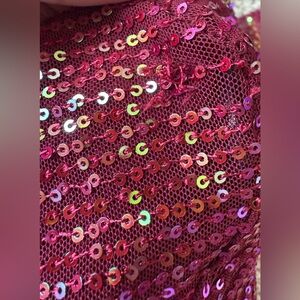 Overall nice condition except some sequins lost on the left shoulder as seen in last picture. Hard to notice and can be easily repaired to prevent more damage. Measures 15.5” pit to pit, 14.75” shoulder seam to shoulder seam, 24” long sleeve, 25.5” long.