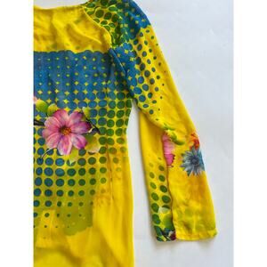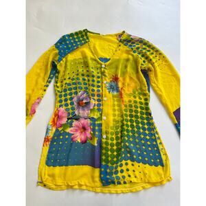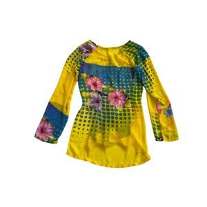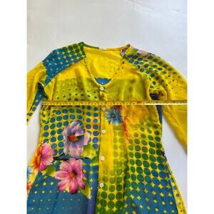 READ Kim Lai 100% Silk Yellow Floral Sheer Button Down Long Sleeve Blouse